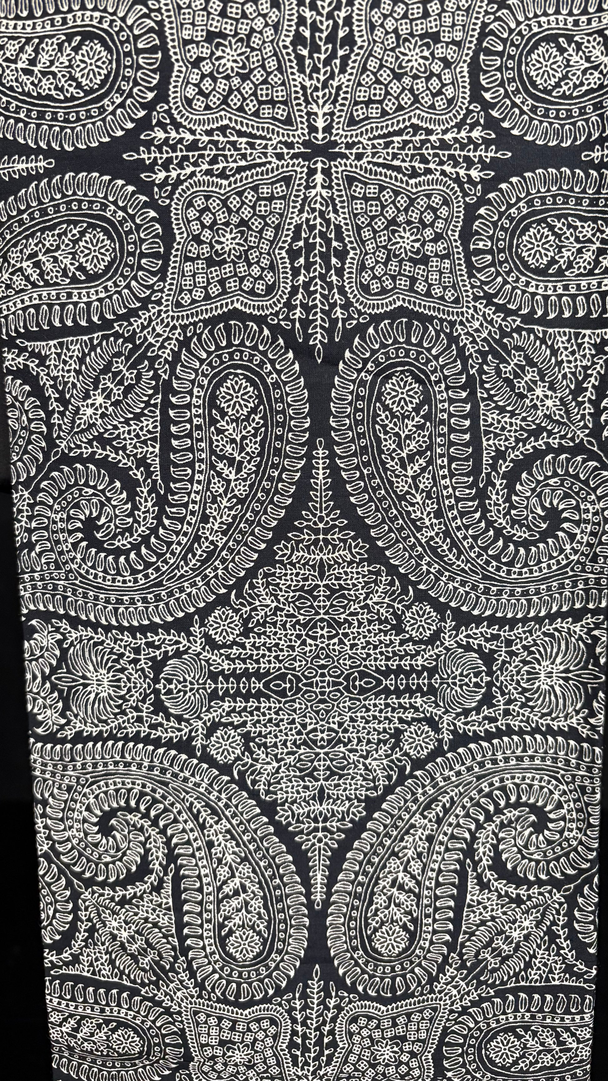 Loose, unstitched bottom material in a contrasting paisley print.